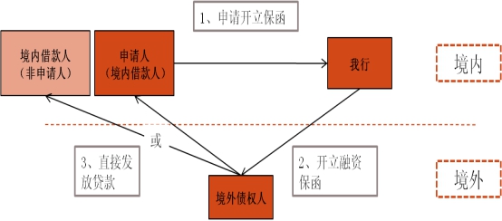 境内法人作为申请人向我行申请开立受益人为境外银行的跨境融资类保函,境外银行凭我行保函为境内企业直接发放贷款的业务。